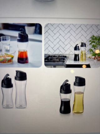Conjunto de recipientes da Tupperware, ideais para azeite e vinagre. - Design elegante e prático. - Tampa com abertura segura.