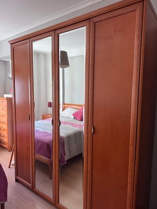 Conjunto de quarto de casal em madeira. - Cama casal -Mesinhas de cabeceira com gavetas -Roupeiro 4 portas -Camiseiro com 7 gavetas Interessados em comprar têm que garantir vir levantar