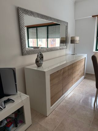 Vendo mesa de apoio branca com luz imbutida Medidas: 82,5 por 115 cm Tampo em vidro fosco Em óptimo estado Preço original de aquisição: 800€