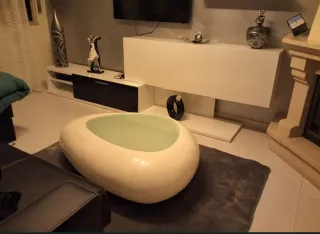 Mesa de centro com um design moderno e elegante, perfeita para complementar a sua sala de estar. A sua forma orgânica e a luz embutida criam um ambiente acolhedor. - Design único e contemporâneo. - Acabamento em branco brilhante. - Tampo em vidro translúcido.
