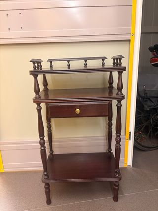 Este aparador de entrada adiciona um toque clássico a qualquer hall. - Design de madeira escura. - Possui uma gaveta com puxador dourado. - Duas prateleiras para arrumação. - Pés torneados detalhados.