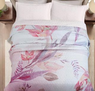 ‼️COLCHA 2 EM 1‼️ Colcha dupla face com estampado floral multicolorido sobre fundo branco. Inclui 2 almofadas no mesmo tecido da colcha, com as dimensões de 50x70 cm. Composição: ▪️100% Poliéster Dimensões: ▪️250 (largura) x 270 (comprimento)