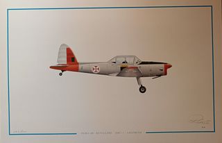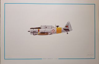 6 gravuras da Colecção AVIÕES DE PORTUGAL - impressão a cores pelos em papel couché d'Art Damasco com 48x33cm em edição limitada (500) numerada e assinada pelo autor. Em aguarela e guache, pelo pintor José Manuel Rodrigues Costa, Eng. Aeronautico e ex-oficial da Força Aérea Portuguesa. Cada gravura está acompanhada de ficha técnica e informativa do avião: 1 - North American T-6G (17) 2 - OGMA - De Havilland DHC - 1 Chipmunk (18) 3 - Republic F-84G Thunderjet (20) 4 - Lockheed T-33A (21) 5 - Dornier Do 27 A4 (24) 6 - Lockheed PV-2 Harpoon (25) Cada gravura 95€.