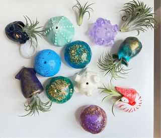 Each piece is €13. Numbers 3, 5, 9, and 10 are made from epoxy resin, while the others are crafted from air-dry clay and coated with a water-resistant varnish. However, prolonged soaking in water is not recommended. Tillandsias are not included but can be found in my profile. Cada peça custa 13€. Os números 3, 5, 9 e 10 são feitos de resina epóxi, enquanto os outros são de argila autoendurecível, cobertos com verniz resistente à água. No entanto, não é recomendado deixá-los submersos por muito tempo. As tillandsias não estão incluídas, mas podem ser encontradas no meu perfil.