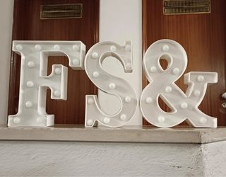 Letras brancas com iluminação com 21 cm de altura. Separadamente 2€/letra