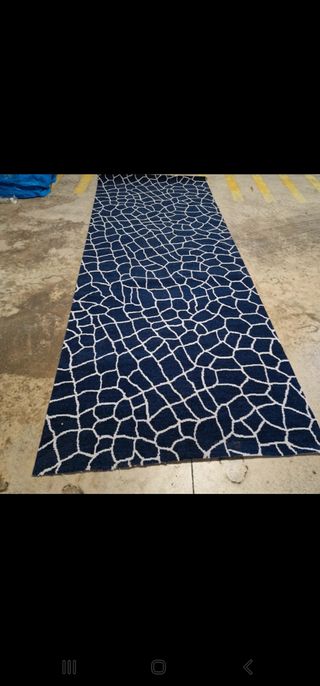 É um artigo bonito e elegante, perfeito para adicionar um toque de estilo à sua casa. Esteve arrumado na garagem, precisa de uma lavagem. -320m x 125m - Padrão moderno e sofisticado em azul e branco. - Ideal para corredores ou áreas de circulação.