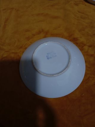 conjunto de cestos, para ir a mesa ou para fruta ... com asa em motivos azuis em ceramica . Têm uma mancha de humidade como mostra a ultima foto.