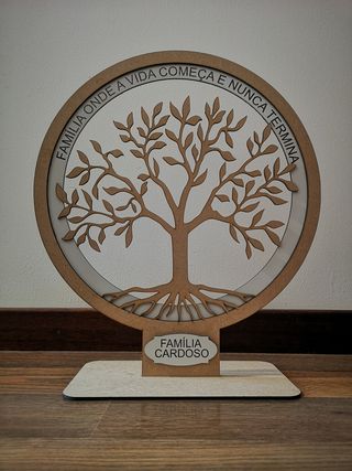 àrvore da Vida, personalizada ao seu gosto, com os nomes da sua familia. Feito em MDF de 3mm Tamanho cerca de 40cm de diametro (posso reduzir o tamanho) Posso fazer na lingua que pretender ( Potuguês, Espanhol, Francês, etc) Faço outros trabalhos em MDF.