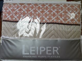 Colcha estampada nas cores beije, branco, camel e laranja. Para cama de solteiro. Dimensoes: 2,00m x 2,60m --- Bedspread parterned in the colors beije, orange, white and camel. Dimensions: 2,00m x 2,60m