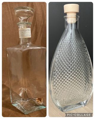 2 Garrafas de vidro vazias Limoncello (formato oval) Grappa (formato em losango) com tampa em vidro