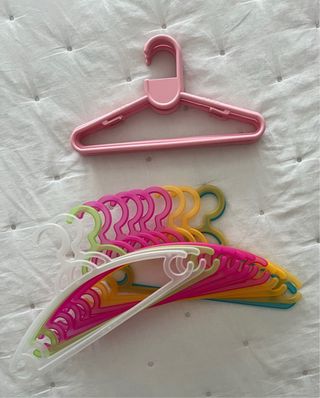 Conjunto de 17 cabides para roupa de criança. - Cores variadas. - Material resistente.