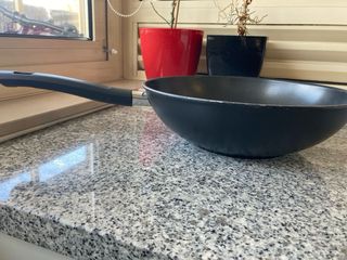 Wok da marca Ernesto Lidl 28cm preto usado, funciona em placas de indução, vitro, eléctrico, gás. Tem marcas de uso no interior