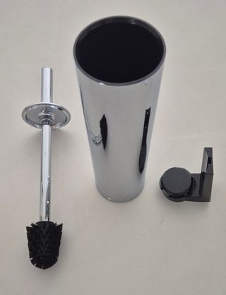Conjunto escova e suporte para WC da marca COSMIC. Inclui 4 escova e 4 suporte. O suporte é em aço inoxidável com acabamento brilhante e elegante. A escova tem cerdas pretas. - Suporte de WC em aço inoxidável - Escova com cerdas pretas - Design moderno e elegante