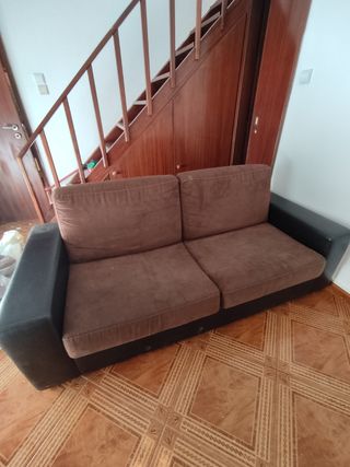 Sofá 2lug, castanho, pele pêssego e pele