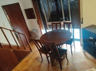 Mesa madeira maciça castanho, extensível , c/4 cad