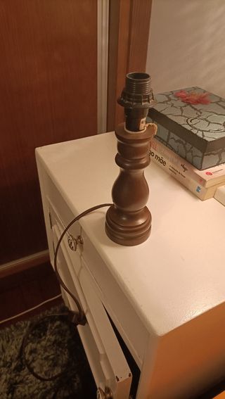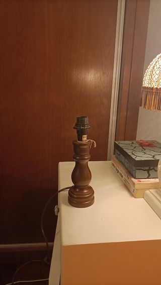 Candeeiro de mesa em madeira maciça. - Design clássico e elegante. - Base robusta e estável.