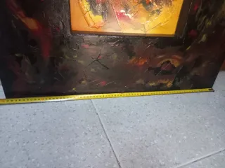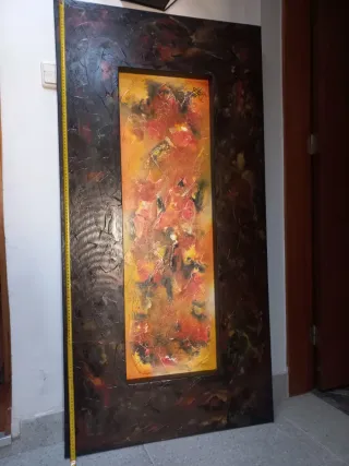 Quadro grande com um design abstrato e texturizado, perfeito para adicionar um toque artístico a qualquer espaço. - Dimensões generosas para um impacto visual. - Combinação de cores vibrantes e tons escuros.