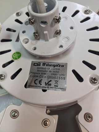 Vendo conjunto exclusivo: Ventilador de teto com Luz Orbegozo CP 15076 B (80 cm) + Kit de Comando à Distância Original RCM 8250. ✅ Estado: Muito bom (ver fotos). 💎 O VALOR: Inclui Kit Comando (Raro/Esgotado) que custa 55+ €. 🎮 Controlo Híbrido: Inclui comando + correntes (backup ideal). ⚠️ OBS: Suporte do casquilho adaptado (dobrado) para permitir lâmpadas LED/Smart maiores. Melhoria prática, funciona a 100%. ⚙️ Specs: - Diâmetro: 80cm - Motor: 50W (na velocidade máx.) - Casquilho: E14 - 6 pás em madeira prensada e lacada a branco Venda entre particulares. Como está, sem garantia/devolução.