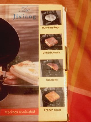 Nunca usado. Inclui frigideira anti-aderente, forma e copo misturador.
