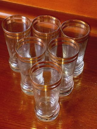 6 Copos com ornamentos de fio de ouro - Anos 80