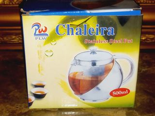 Artigo dos anos 2000 Nunca usado, na embalagem e proteção original. Em Inox e vidro. Com filtro para chá.