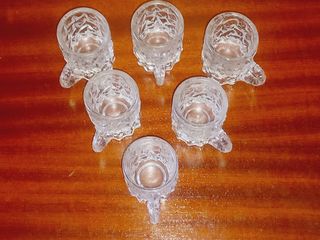 Conjunto de copos para licor. Em vidro trabalhado. Com 5 cm de altura e 4 cm de diametro. Estão como novos, nunca usados. Peças dos anos 90.