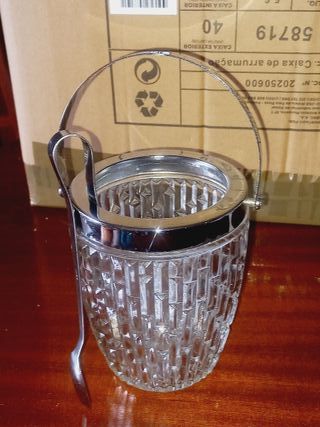 Frapê em cristal. Pega em inox. Com 13cm de altura e 11cm de diametro. Inclui pinça em Inox Peça dos anos 90. Está novo.