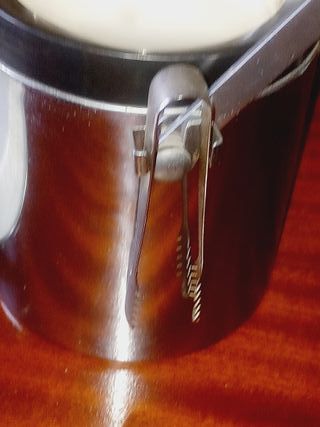 Frapê em inox com tampa e apoio lateral para pinça. Na base tem tampa para introduzir água gelada ou quente. 16 cm de altura e 13 cm de diametro Está novo, nunca usado. Peça dos anos 90.