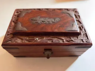 Vendo lote de 4 cajas/cofres de madera en buen estado general, ideales para guardar joyas, relojes, monedas, recuerdos, o como decoración. ✅ Incluye 4 modelos diferentes: 2 cajas con talla artesanal en relieve 2 cajas con detalles/incrustaciones metálicas Una de ellas con interior forrado en tela roja 📌 Son perfectas para decoración estilo vintage/étnico o para tener cosas pequeñas organizadas. 📍 Se vende todo el lote junto (no separo). Entrega en mano o envío