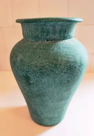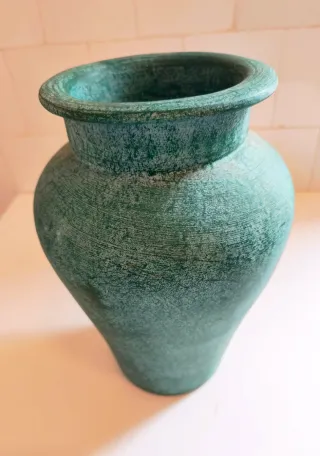 Vendo jarrón decorativo tipo ánfora en color verde envejecido, con acabado rústico muy bonito. Ideal para decoración de salón, entrada, terraza cubierta o para poner con ramas secas / flores artificiales. 📏 Medidas: 33 cm de alto x 22 cm de diámetro ✅ Diseño elegante y estilo rústico ✅ Buen estado general 💶 Precio negociable