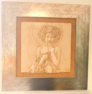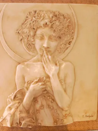 Cuadro de alabastro tallado en relieve – firmado – 57x57 cms. Impresionante pieza decorativa en alabastro con figura femenina en alto relieve, estilo modernista / Art Nouveau, con gran presencia y mucha calidad. Ideal para salón, recibidor o espacio clásico/vintage. Medidas totales: 57 x 57 cm. Buen estado
