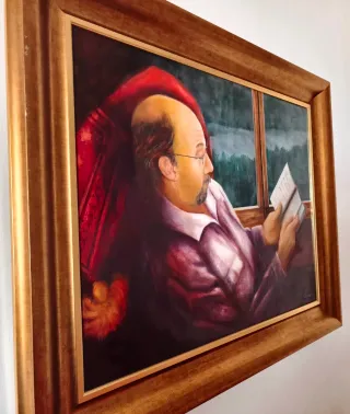 Vendo cuadro al óleo de gran formato, con marco de madera ancho incluido. 📌 Medidas totales con marco: 103 x 82 cm 📌 Grosor total: 5,5 cm 📌 Técnica: óleo (según obra) 📌 Motivo: retrato / escena interior (persona leyendo junto a ventana) 📌 Marco: madera tono dorado/marrón, muy decorativo y robusto 📌 Estado: bueno (ver fotos) ✅ Ideal para salón, despacho, biblioteca, entrada o casa con estilo clásico/retro. ✅ Se entrega listo para colgar. 📍 Entrega en mano negociable con seriedad Se puede negociar precio del marcó solo Negociable