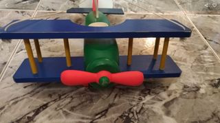 Candeeiro em forma de avião, ideal para decorar um quarto. - Design divertido de avião. - Combinação de cores azul e verde. Artigo nunca usado, restaurado recentemente. Ideal para quarto de criança. A funcionar na perfeição. *lâmpada não incluída
