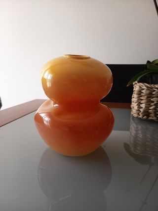 Jarra decorativa com um design único e moderno. - Cor laranja vibrante com transições suaves. - Material em vidro de alta qualidade. - Formato escultural que adiciona um toque de elegância a qualquer ambiente.