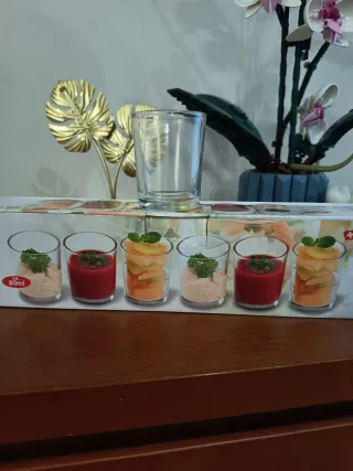 Conjunto de seis copos de aperitivo da marca Alpina. Perfeitos para servir pequenas porções. - Capacidade de 80ml cada. - Design elegante e transparente.