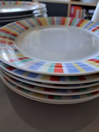 Conjunto de pratos 17 undades 6 pratos rasos 6 sobremesa 5 sopa (1 tem ligeiro defeito) Usados mas em bom estado