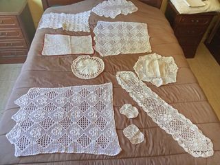 Conjunto de peças de renda antigas, delicadas e bem conservadas. Ideal para decoração ou colecionadores. - Inclui 12 peças de diferentes tamanhos e formatos. - Peças em tons de bege e branco. - Feitas à mão, com detalhes únicos e intrincados. Preços mencionados em mensagem privada consoante a ou as peças pretendidas. Artigo devidamente embalado! 📦