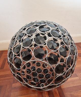 Lustre decorativo em formato esférico, com um design moderno e elegante. (Tenho 2 iguais). O preço 45€ cada um. - Estrutura em metal prateado. - Detalhes em cristais pretos facetados. - Peça de destaque para qualquer ambiente.