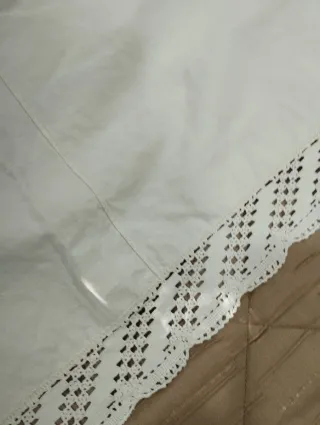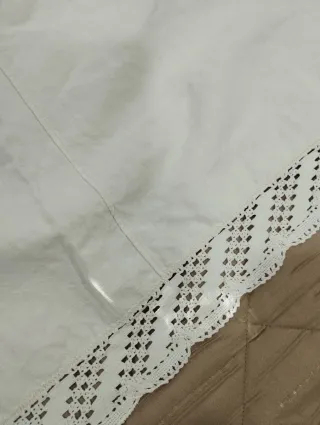 Cortina com detalhes em crochê feito à mão.A cortina entra no varão. 143 x 70 xn - Acabamento em crochê. - Tecido com toque natural.