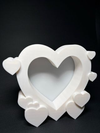 Porta-retrato em formato de coração, com um design delicado e romântico. - Detalhes em corações menores. - Acabamento liso.