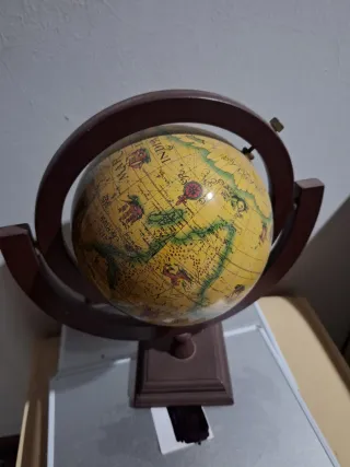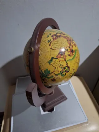 Globo decorativo com base em madeira. - Detalhes em relevo. - Design clássico.