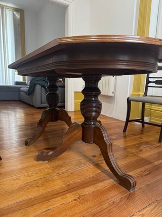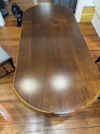Mesa de jantar robusta e elegante, feita em madeira maciça. - Design clássico com pernas torneadas. - Superfície ampla para refeições. - Acabamento natural da madeira. -Medidas: 1,55x0,90cm