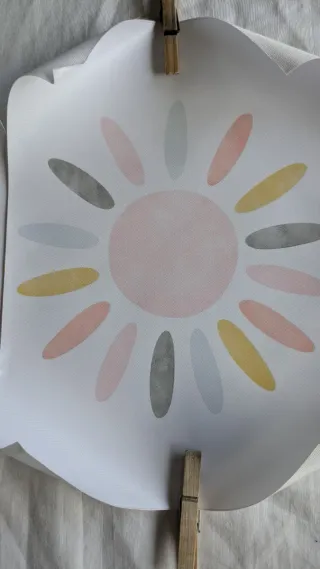 Conjunto de três telas decorativas com temas infantis, perfeitas para dar um toque especial ao quarto dos mais pequenos. - Design de arco-íris. - Ilustração de nuvem com corações. - Desenho de sol. - Cores suaves e alegres. Tamanho A4. Completamente novas!