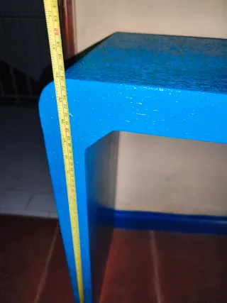 Mesa consola de color azul vibrante con un acabado texturizado. - Diseño de cascata moderno. - Acabado texturizado.