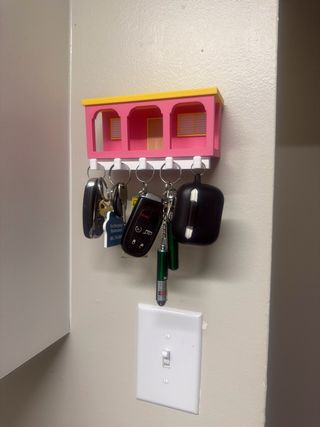 Porta chaves inspirado em La Casita do Bad Bunny. Uma peça divertida para organizar suas chaves. - Design temático. - Cores vibrantes.
