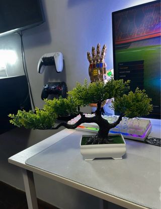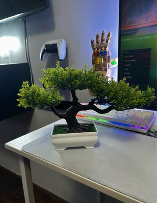 Bonsai artificial para decorar su espacio. - Tronco y ramas en tono marrón. - Hojas de color verde vibrante. - Base de cerámica blanca.