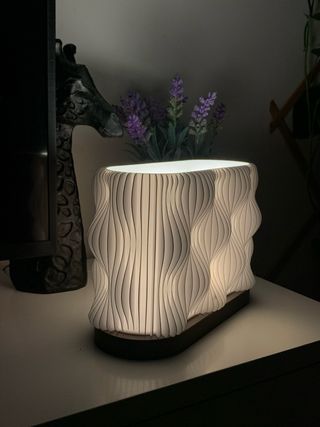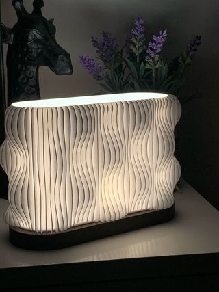 Luminária com um design único e moderno, perfeita para adicionar um toque especial à sua decoração. - Estrutura em papel com detalhes em madeira. - Iluminação suave e difusa. -23cm de altura