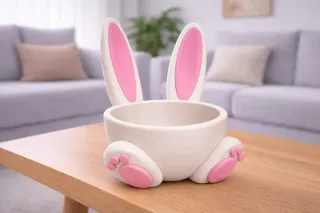 Tigela decorativa em formato de coelho, perfeita para a época da Páscoa. Ideal para colocar ovos de chocolate ou outras guloseimas. - Design divertido com orelhas e patas de coelho. - Acabamento liso e brilhante.