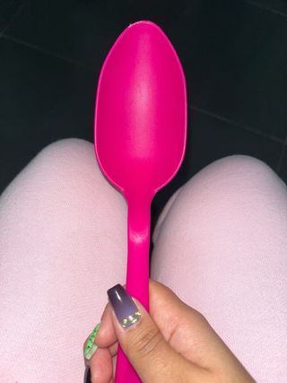 Conjunto de 3 colheres grandes para a cozinha. Cor de rosa choque. Em plástico.