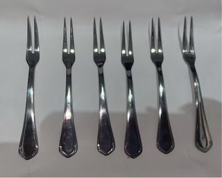 Conjunto de 12 garfos pequenos para servir carnes frias.
